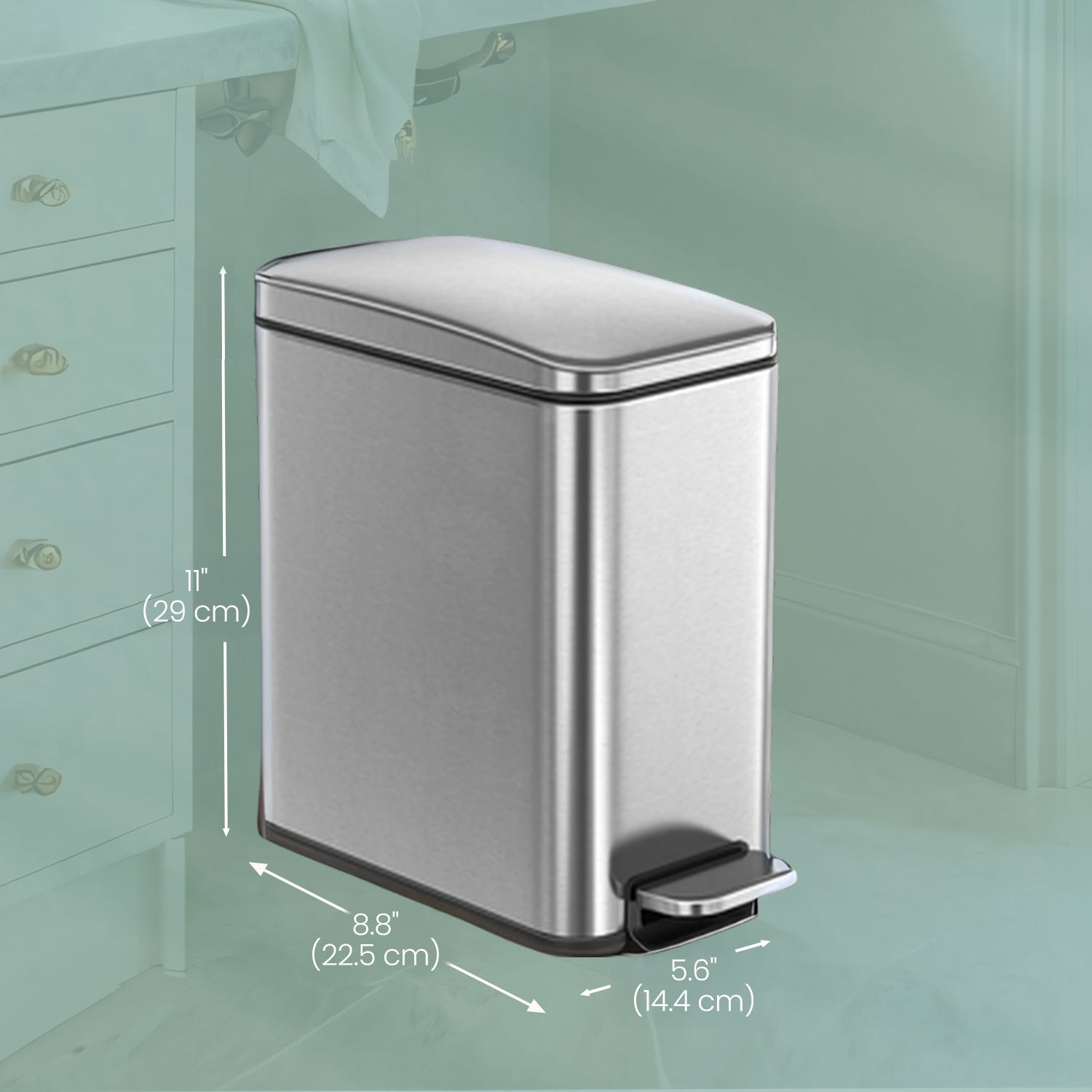 1.3 Gal Slim Step Bathroom Trash Can, Soft-Close Lid, Removable Bucket, Space-Saving Stainless Steel Bin,Silver
