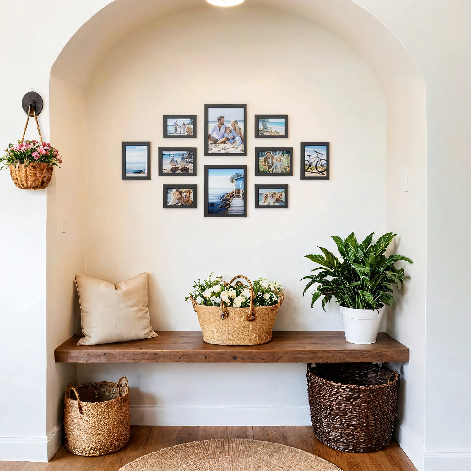 10-Pack Collage Picture Frames Set - Includes 8x10, 5x7 & 4x6 Sizes, Glass Front Wall Gallery Decor, Ink Black