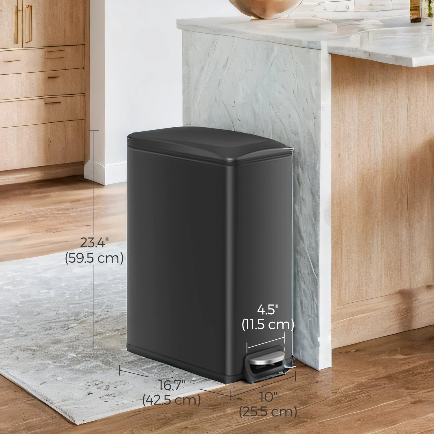 13 Gallon Slim Trash Can, Soft-Close Lid with Inner Bucket & Pedal, Narrow Space Kitchen Bin, Black
