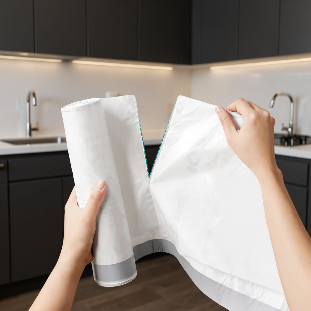 18 Gallon Heavy Duty Drawstring Trash Bags, 80 Count Kitchen Garbage Bag Liners for Large Cans, 4 Rolls, White