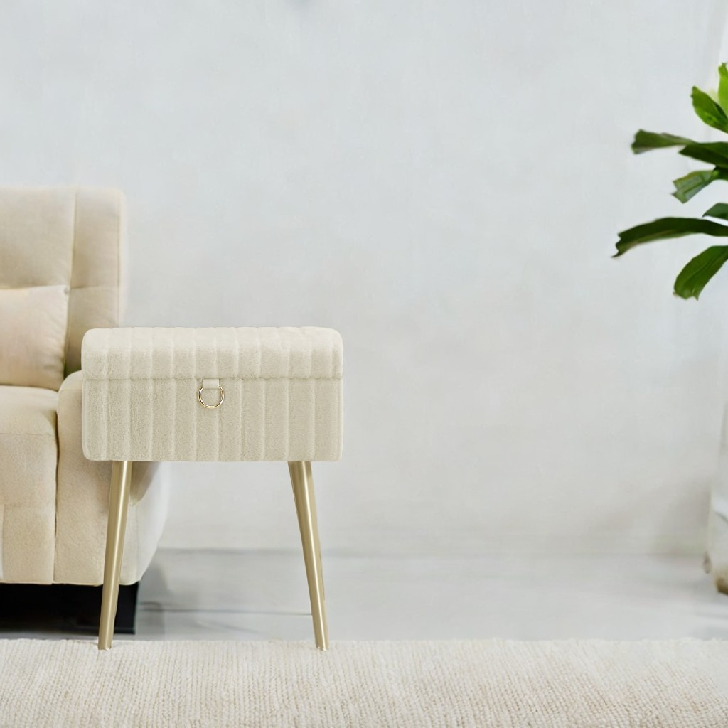 Vanity Stool with Storage and Removable Dividers, Makeup Stool and Footrest with Adjustable Feet for Bedroom and Living Room, Cappuccino Beige
