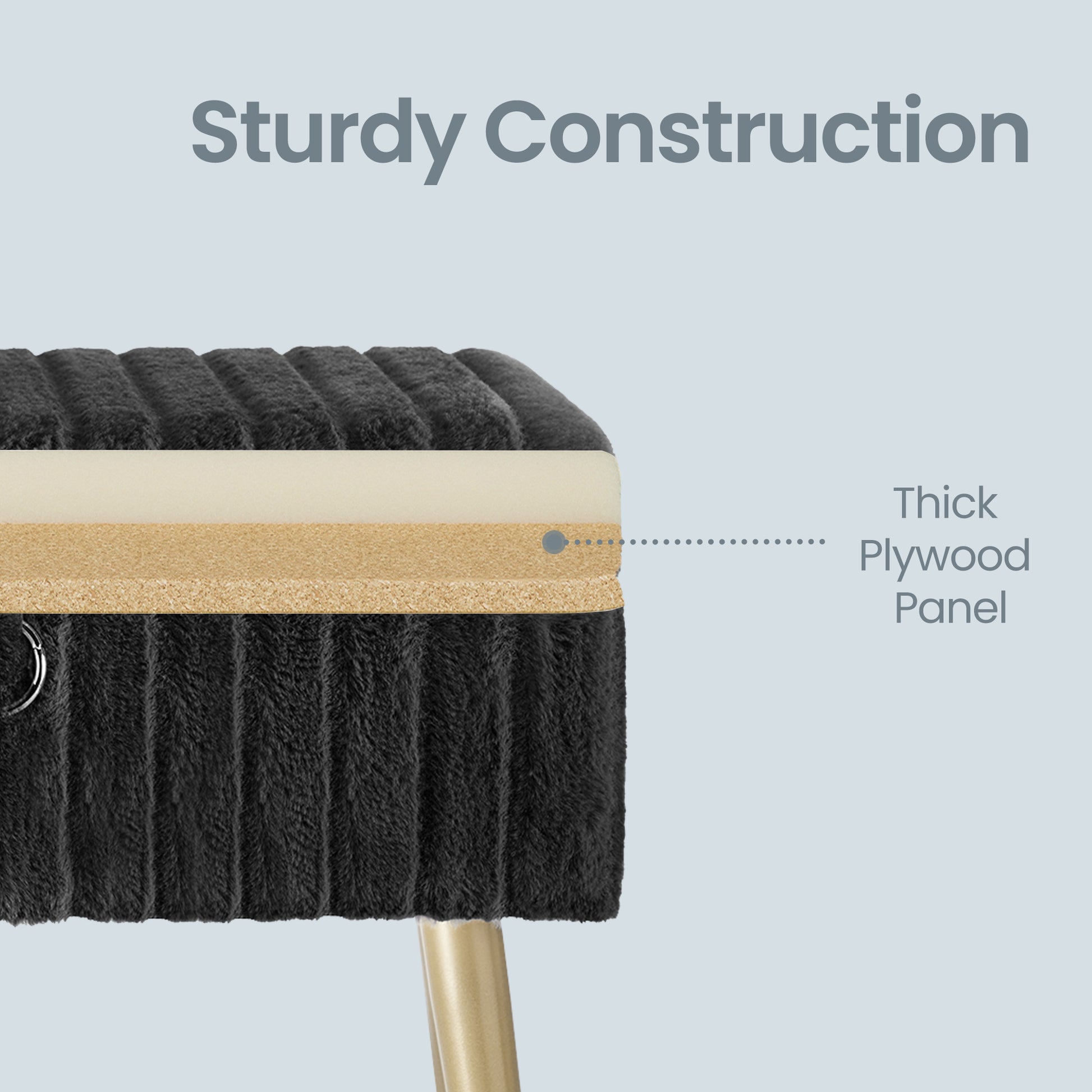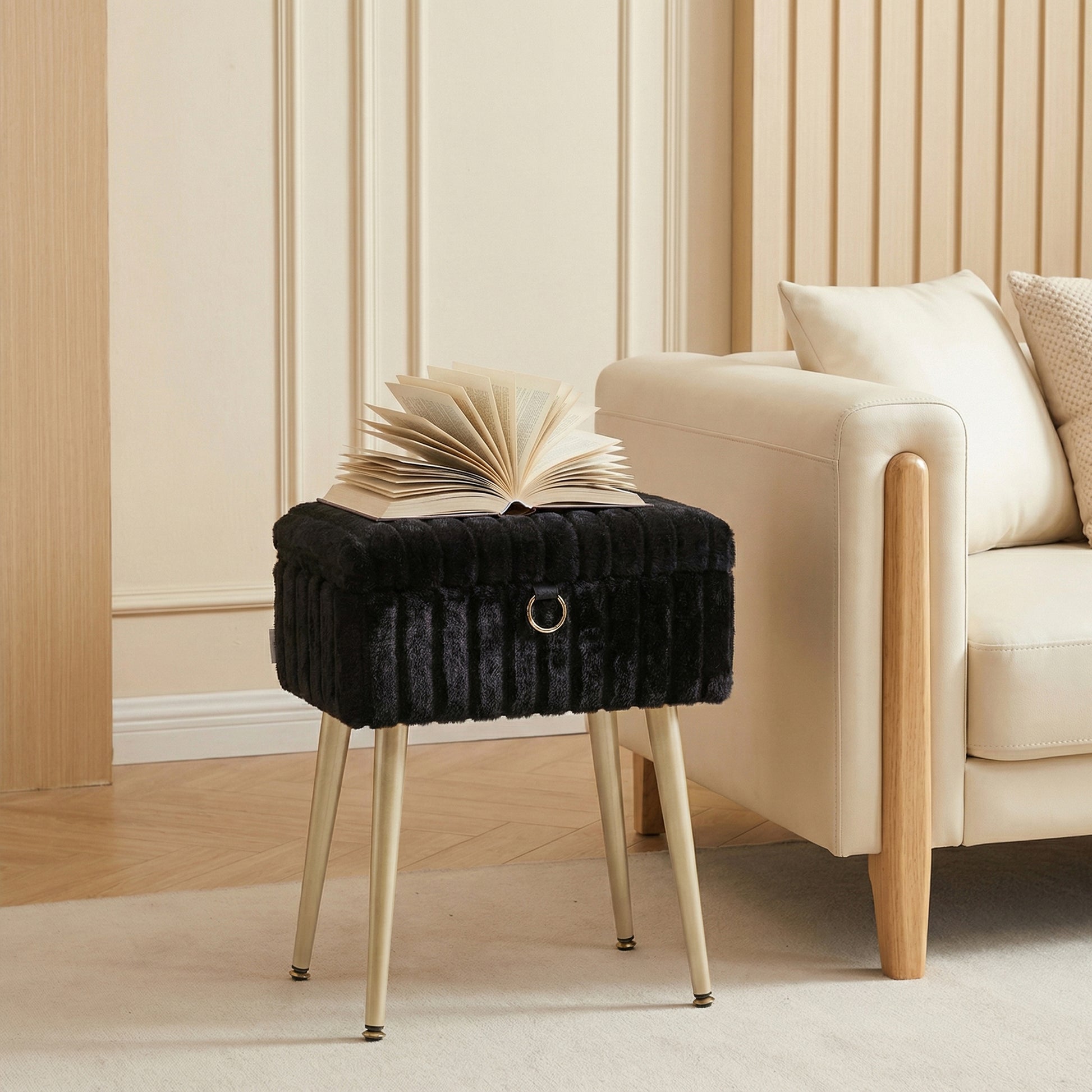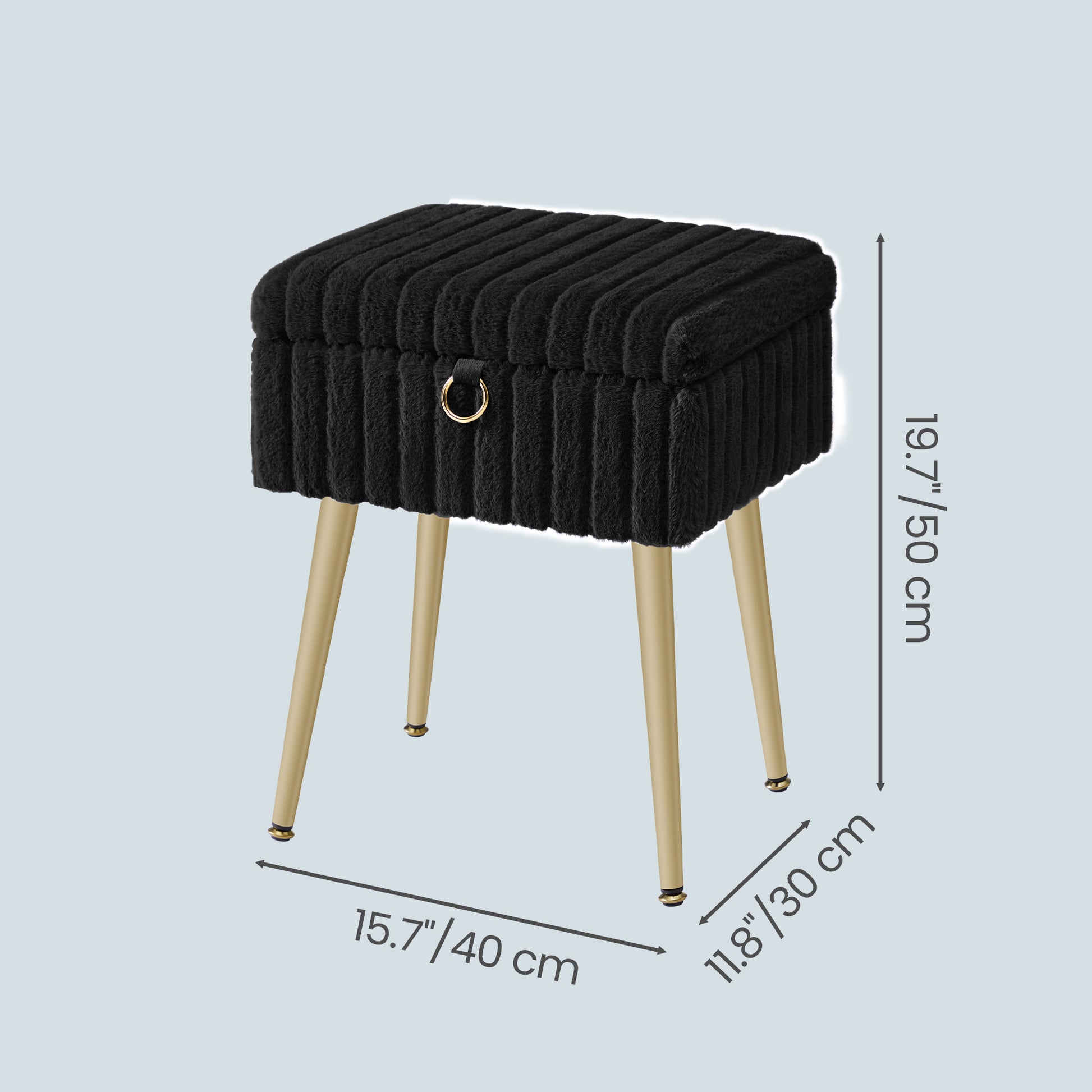 Vanity Stool with Storage and Removable Dividers, Makeup Stool and Footrest with Adjustable Feet for Bedroom and Living Room, Ink Black