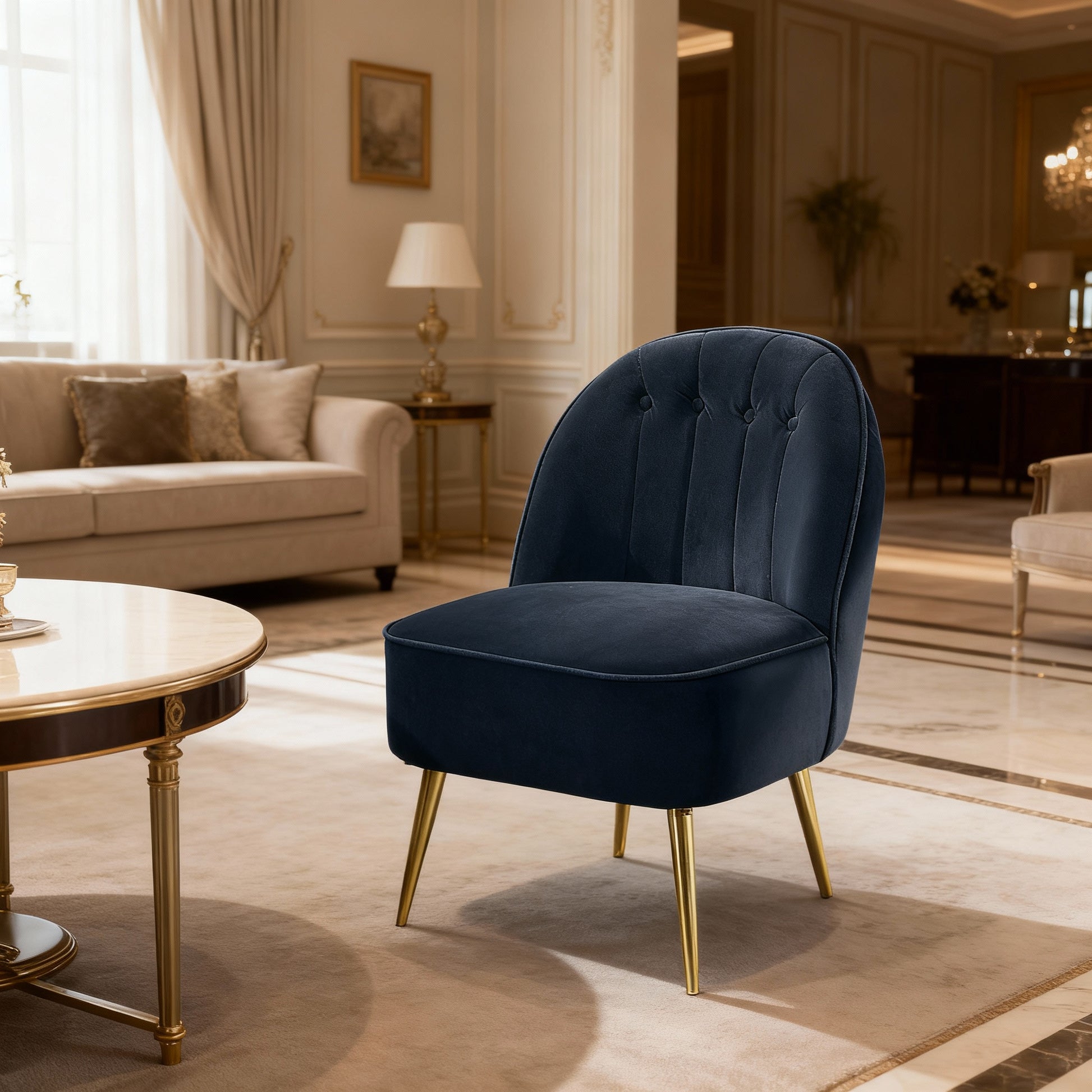 Velvet Accent Chair with Shell Back, Wide Seat, Metal Legs, Comfy Vanity Chair for Living Room, Bedroom, Office, Charcoal Blue